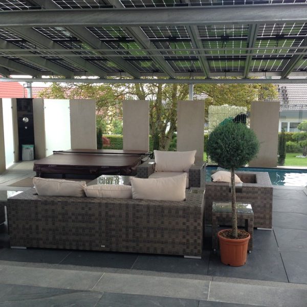 Lichtdurchlässige Terrassenüberdachung und hochwertige Photovoltaik in einer Lösung.